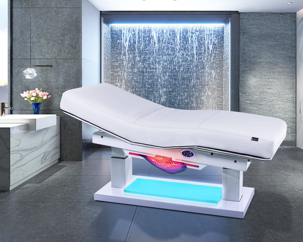 - Комфорт на максимум: массажные столы с подогревом, LED-терапия, массаж, нулевой гравитационный режим — ощущается, как облако с Wi-Fi.