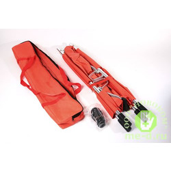 Носилки продольно и поперечно складные НППС-ММ, на жестких опорах, брусья изготовлены из легкого сплава, складываются в продольном и поперечном направлении, в сложенном виде 1058х235х135, ложе из ПВХ ткани